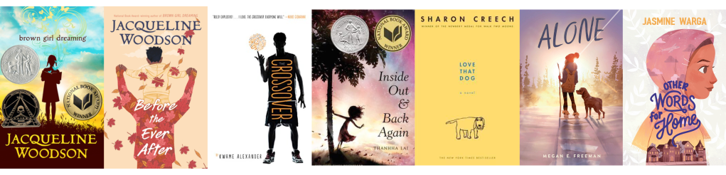 These Middle Grade and Young Adult novels are written in verse – or a series of poems – and may be the perfect selections for a reluctant reader. They’re fast-paced, have very few words per page, and can be way less daunting than your average prose novel!